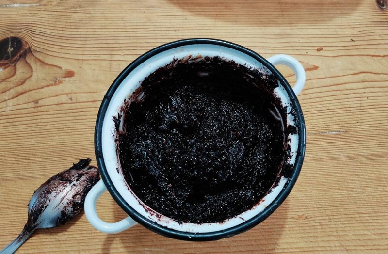 Uva Montepulciano e zucchero sono gli ingredienti necessari per realizzare la Ragnata, il cui metodo di lavorazione tradizionale prevede due cotture differenti: gli acini interi, lavati e cerniti vengono depositati in un paiolo idoneo per le preparazioni alimentari, posto a riscaldare sul fuoco. Man mano che il riscaldamento prosegue, si inizia a mescolare ininterrottamente la massa mediante l’utilizzo di un mestolo di legno, così da evitare che si attacchi sul fondo del tegame. Questa operazione provoca la prima rottura degli acini e la fuoriuscita del mosto. Raggiunta l’ebollizione si procede a fuoco lento, continuando a mescolare affinché il composto diventi omogeneo. Dopo due ore, si spegne il fuoco e si lascia raffreddare. Successivamente viene effettuata la passatura con un antico setaccio:” La pellicciola”, costituito da una serie di cerchi concentrici di rame e acciaio, sostenuta da raggi e da un supporto di legno. A questo punto il prodotto viene nuovamente cotto a fuoco lento, con l’aggiunta dello zucchero, anche se secondo la tradizione abruzzese la vera Ragnata non contiene dolcificanti artificiali.