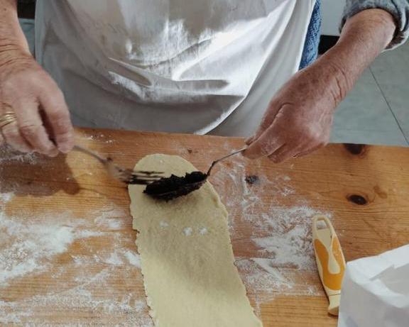 Alcune testimonianze,invece, ci raccontano che le donne cupellesi spesso aggiungevano, per enfatizzare l’essenza, anche: 3 o 4  biscotti sbriciolati, un cucchiaio di cioccolato fondente tritato, cannella, polvere di caffè, bucce d’arancio e mandorle tritate, cosi da avere già il composto pronto da utilizzare come ripieno dei Tarallucci, che tradizionalmente chiamiamo “Celli ripieni”, senza doverlo preparare al momento.