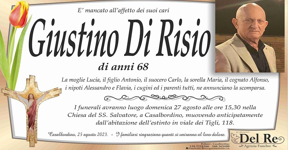 È mancato all’affetto dei suoi cari Giustino Di Risio di anni 68.