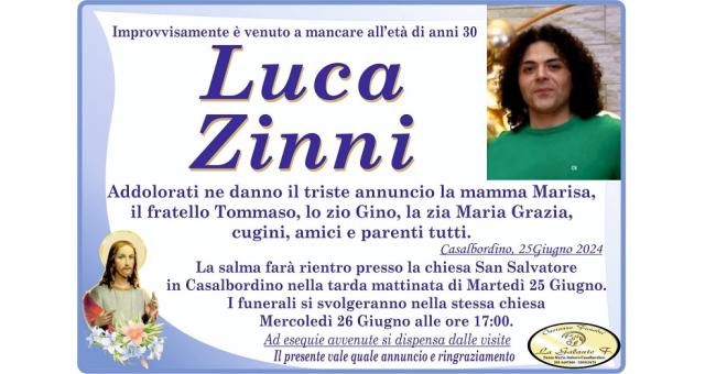 «Da un cielo grigio piovevano lacrime di rame, piangevano la libertà perduta». La saggezza popolare vuole che il Cielo piange, piovono lacrime, quando un’anima buona muore. E non c’è età della vita come la giovinezza, come gli anni in cui si inizia il viaggio nell’età adulta, che si lega alla libertà . Domani alle ore 17 nella Chiesa SS Salvatore di Casalbordino ci saranno i funerali di Luca Zinni. Un’altra vita spezzata, la comunità di Casalbordino piange un suo figlio. Giovane, spensierato, un ragazzo buono e generoso, conosciuto e amato da tutti.