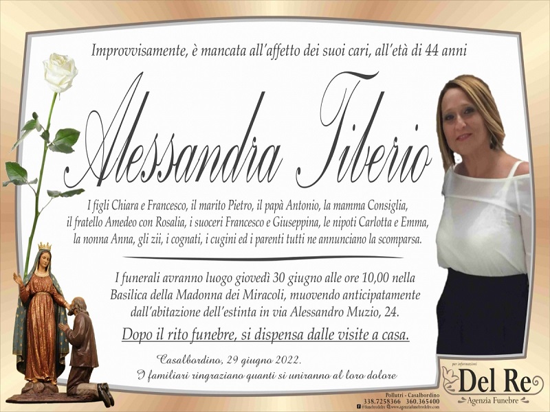 E' venuta a improvvisamente a mancare all'affetto dei suoi cari Alessandra Tiberio.