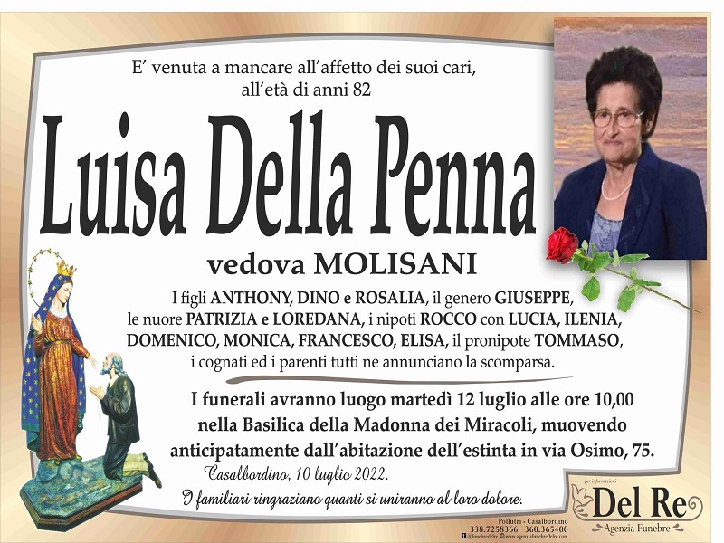 È venuta a mancare all’affetto dei suoi cari Luisa Della Penna, vedova Molisani.