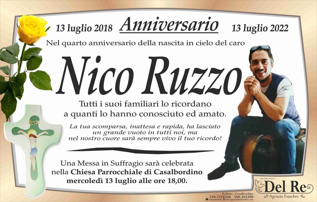 Nel quarto anniversario della nascita al cielo del caro Nico Ruzzo tutti i suoi familiari lo ricordano a quanti lo hanno conosciuto ed amato.