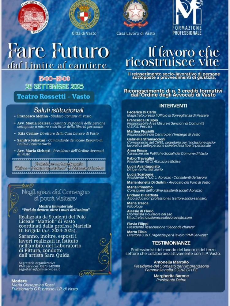 In occasione del 50° Anniversario dall’emanazione della L. 354/1975 recante “Norme sull’Ordinamento Penitenziario e sull’esecuzione della misure privative e limitative della libertà”, la Direzione della Casa Lavoro di Vasto ha inteso organizzare, tra le altre iniziative, un Convegno, nell’idea che il lavoro costituisca una delle principali leve di cambiamento e di inclusione sociale, tanto più in considerazione dell’utenza di questo Istituto, che ospita una Casa Lavoro per l’esecuzione dell’omonima misura di sicurezza detentiva.