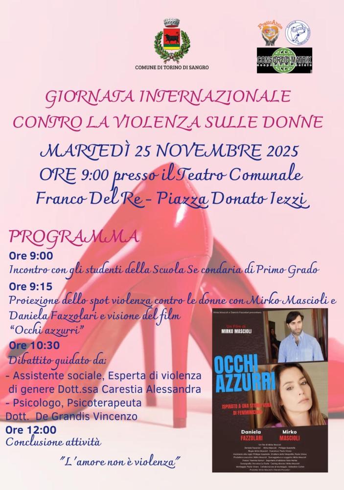 Martedì 25 novembre a Torino Di Sangro ricche iniziative sulla Giornata internazionale contro la violenza sulle donne.