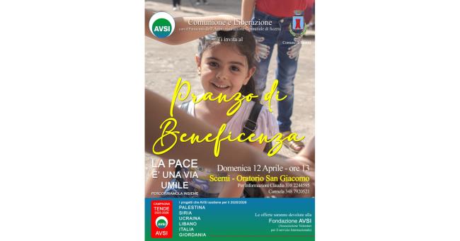 Domenica 12 aprile, ore 13.00, il gruppo di Comunione e Liberazione Scerni-Pollutri organizza, in collaborazione con la Parrocchia e con il patrocinio del Comune di Scerni, un pranzo di beneficenza che si terrà presso l’Oratorio di San Giacomo.
