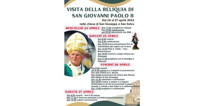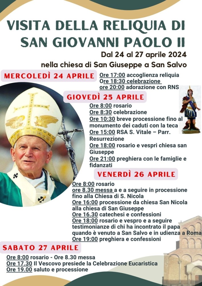 San Salvo si prepara ad un momento di forte devozione con l'accoglienza della Reliquia di San Giovanni Paolo II.