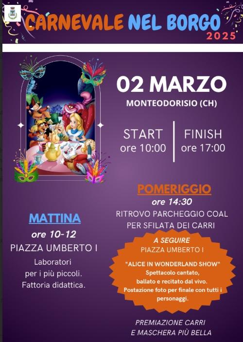 L'Amministrazione Comunale di Monteodorisio in collaborazione con le associazioni locali, organizza il "Carnevale nel Borgo 2025"!