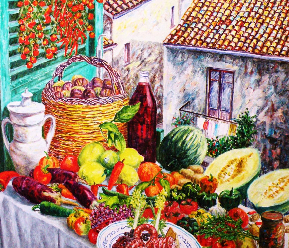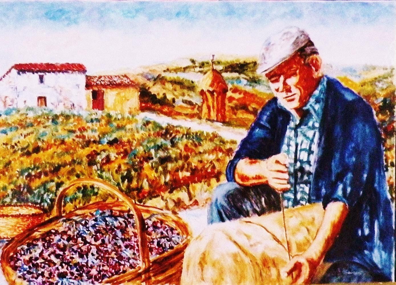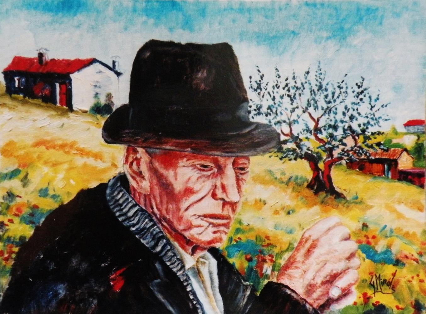 Al centro di qualsiasi lavoro , o che si erga maestoso a contendere il passo ai venti o che si abbarbichi tenacemente fra i sassi e i pendii scoscesi, sta un ULIVO , questa pianta sempre verde che l' artista simboleggia le energie più vitali dell' uomo stesso.