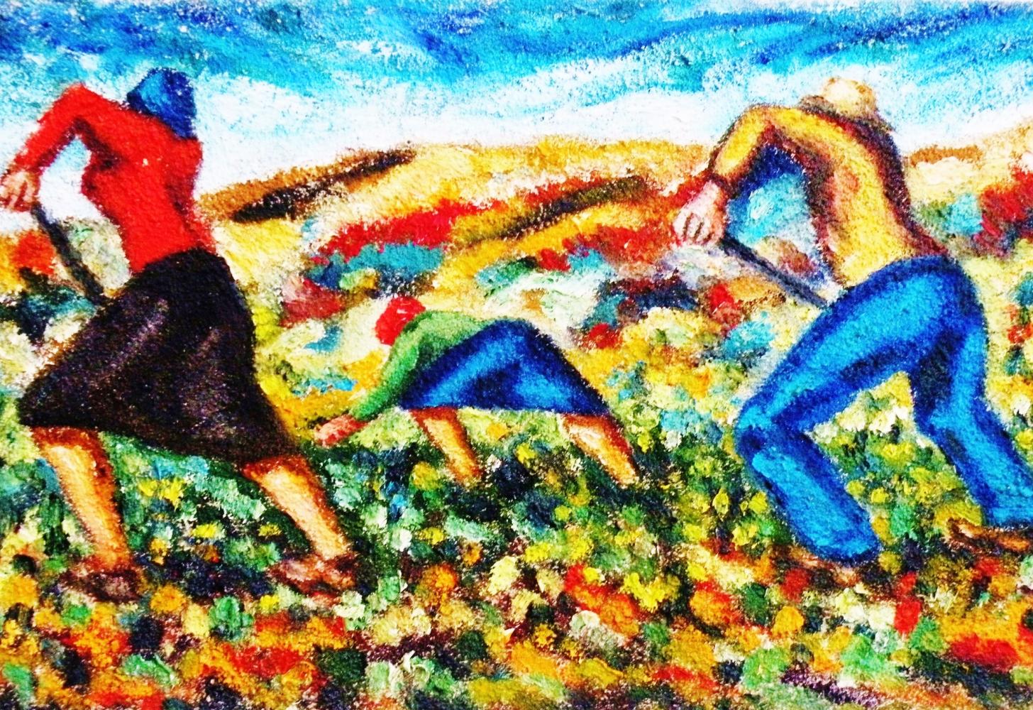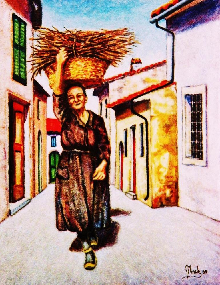 Gaetano Minale con la sua pittura evoca un mondo georgico dei contadini abruzzesi , dove l' esistenza è data da un' alta poesia , da un costante invito alla pace e da un onnipossente desiderio di sopravvivenza .