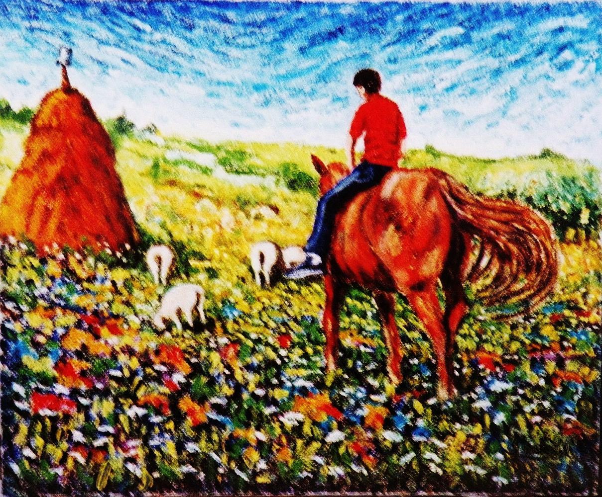 Le rustiche masserie, gli ulivi verdeggianti, i solitari pagliai prendono una mirabile vita dalla tavolozza di Gaetano Minale, dove il giallo, il bleu d' olttremare, la seppia naturale e gli altri colori si compongono in una miriade di infinite variazioni per evocare un mondo georgico, dove l' esistenza è data da un' alta poesia , da un costante invito alla pace alla fratellanza e soprattutto da un onnipossente desiderio di sopravvivenza .