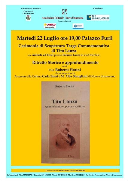 Tito Lanza, laureato in lettere e matematica alla Regia Università del Regno di Napoli nel 1860, dedicò la sua vita a studi storici oltre ad essere stato poeta e oratore, tenne un discorso in occasione dei solenni funerali celebrati il 17 febbraio 1878 di Vittorio Emanuele II, fu patriota e impegnato nella lotta al brigantaggio, e partecipò attivamente alla vita sociale e politica del tempo.