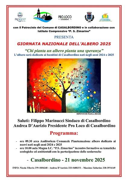 “Chi pianta un albero pianta una speranza” è il pensiero speciale che la Pro Loco di Casalbordino, organizzatrice dell’evento in collaborazione, vuol dedicare ai nati nella ricorrenza della “Festa dell’Albero”. L'iniziativa vuole sensibilizzare la comunità al rispetto ed importanza che riveste la sostenibilità ambientale.