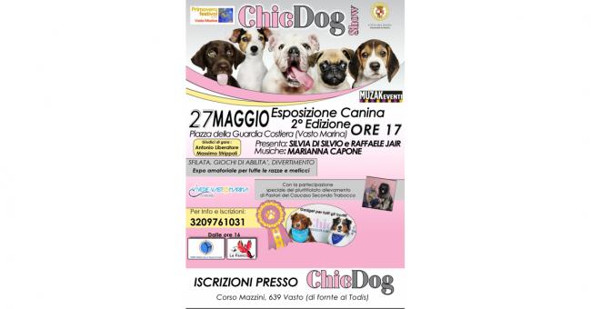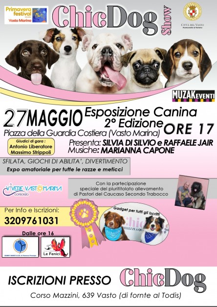 Amici a quattro zampe” protagonisti dell’evento “Chic Dog Show” in programma nel pomeriggio di sabato 27 maggio, a partire dalle ore 17, in piazza della Guardia Costiera a Vasto Marina.