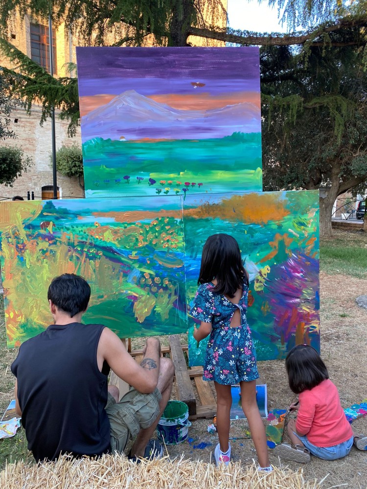 Un coloratissimo e divertente pomeriggio in cui tanti bambini si sono immersi nella magica e suggestiva cornice del Giardinetto, a disegnare e a colorare prima su fogli di carta e poi con le tempere su tele di ogni dimensione. Hanno sporcato le loro manine di colori, sognando e disegnando un mondo migliore.