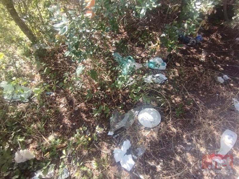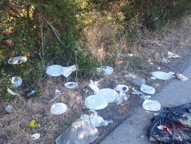 Negli abbondanti cumuli di rifiuti spiccano piatti di plastica, probabilmente postumi di pic nic, e bottiglie di vetro vuote di alcolici. Rifiuto tra i più abbandonati dell’estate, ogni notte gruppi di giovanissimi sono essersi abbandonati all’alcolismo abbandonano alla Marina o nel centro storico bottiglie vuote, sempre di vetro.