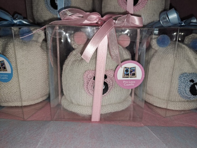 I cappellini realizzati dalle nostre volontarie sono stati messi a disposizione dell’Ufficio Anagrafe del Comune che provvederà a farne dono ai genitori,da parte della Pro-Loco, al momento della registrazione della nascita.