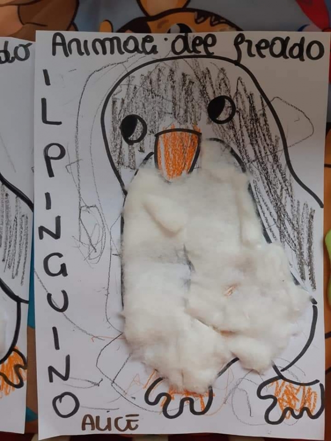 Non si arresta il flusso di laboratori didattici nella Scuola dell’infanzia paritaria parrocchiale diretta da Angela Di Fabio, lavorando su un percorso didattico che prende il nome di Macroatelier Inverno che include tutti i piccoli alunni dai 0 ai 6 anni. Sono tutte esperienze sensoriali che aiutano i bambini attraverso il benessere emozionale, la conseguente acquisizione dell’autonomia, dell’identità e della competenza, attività volte ad avere una continuità nel percorso di crescita con un’entusiasmante risposta da parte dei bambini che si dicono felicissimi di impiastricciare le loro piccole manine nei materiali che vengono sottoposti alla loro attenzione. Il filo conduttore è un simpaticissimo pinguino chiamato “Solo Solo”, proprio ad indicare il suo stato di perenne solitudine, ma che verrà interrotto da l’ incontro con il gabbiano Fiordaliso che, attraverso la nascita di una bellissima amicizia, lo aiuterà a scacciare la sua solitudine portandolo con sé verso una spiaggia di ghiaccio piena di altri pinguini che lo ribattezzeranno Tuffatore, e dove infine troverà anche l’amore. Questi i temi fondamentali che vengono trattati per un giusto sviluppo emotivo: amicizia, amore, solidarietà. Il personaggio è stato riprodotto con materiali di recupero, e con esso anche il suo habitat naturale; è stata quindi elaborata la neve artificiale con schiuma profumata che ha dato luogo anche al processo di modificazione degli stadi dell’acqua, occasione di apprendimento di un fenomeno scientifico da parte dei bambini.