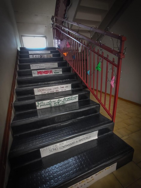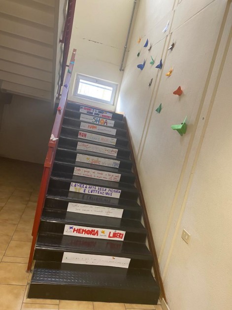 Giornata che ha visto al centro l’indipendenza dei ragazzi nel ravvivare la memoria attraverso strumenti multimediali, come la visione del lungometraggio “Un Sacchetto di Biglie” adattato dal romanzo autobiografico di Joseph Joffo pubblicato nel 1973, ed analogamente con attività pratiche. Gli studenti, infatti, si sono cimentati nell’abbellimento delle due scale principali dell’Istituto, iscrivendo frasi e citazioni sugli scalini, dando vita ad un vero e proprio percorso della Memoria al cui inizio è posta una valigia anni '30 dalla quale spicca il volo uno stormo di farfalle colorate, una per ogni anima dei deportati nei campi di sterminio d’Europa, il tutto incorniciato dalla citazione della Senatrice della Repubblica Italiana, Liliana Segre, ad augurio per un domani sereno: “Siate sempre come la farfalla gialla che vola sopra i fili spinati”.