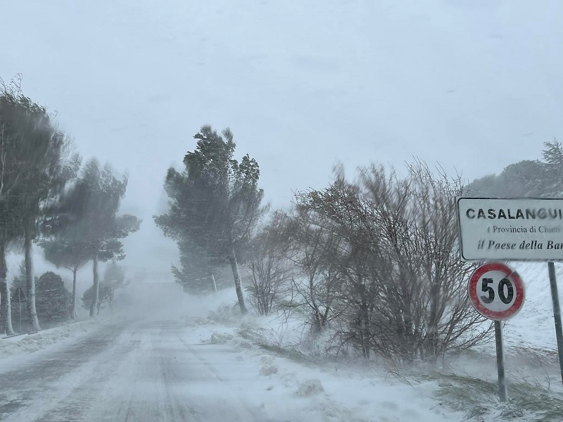 La coltre nevosa è stata molto più spessa nei comuni dell’entroterra tra cui Casalanguida. Il sindaco Luca Conti ha documentato con alcune foto pubblicate sui social. “Inizia a nevicare anche da noi – la nota pubblicata su facebook alle 17.07 - le strade sono imbiancate vi consigliamo di mettervi in viaggio solo se necessario. Le previsioni sono in peggioramento nelle prossime ore. Per urgenze potete contattarci al mio numero personale”.