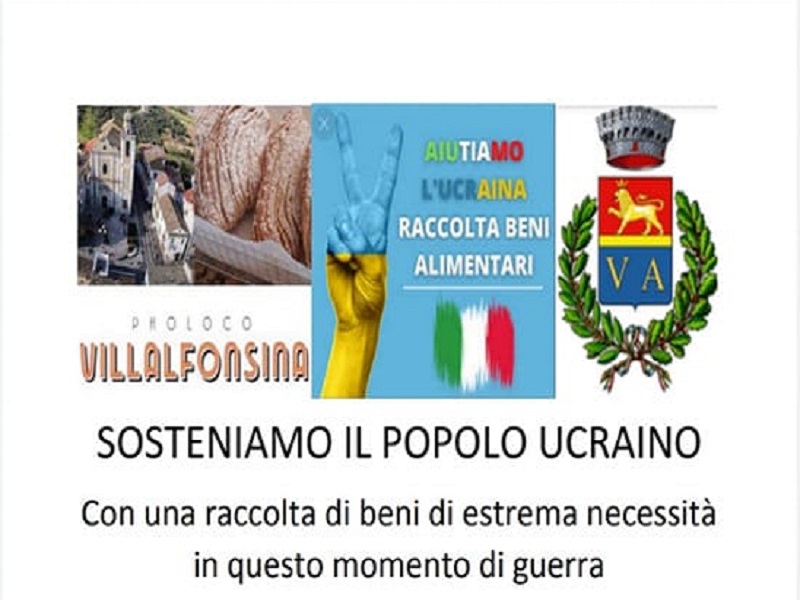 La Pro Loco di Villalfonsina chiede “massima collaborazione” e ringrazia sin d’ora “tutti coloro che vorranno partecipare” alla raccolta solidale “di beni di prima necessità per il popolo ucraino”. Per qualsiasi informazione è a disposizione il numero di cellulare 3384306757.  La raccolta si terrà presso la sede della Pro Loco in via San Rocco 3 martedì 8 marzo dalle 10 a mezzogiorno, il giorno successivo dalle 17 alle 19 e venerdì 11 marzo la mattina dalle 10 alle 12 e il pomeriggio dalle 17 alle 19. I “beni di estrema necessità in questo momento di guerra”  indispensabili sono “cibo in scatola a lunga conservazione (carne, pesce, legumi), latte in polvere, omogeneizzati per bambini, pasta e pastina, pannolini e salviette per bambini e adulti, sapone liquido e saponette”.