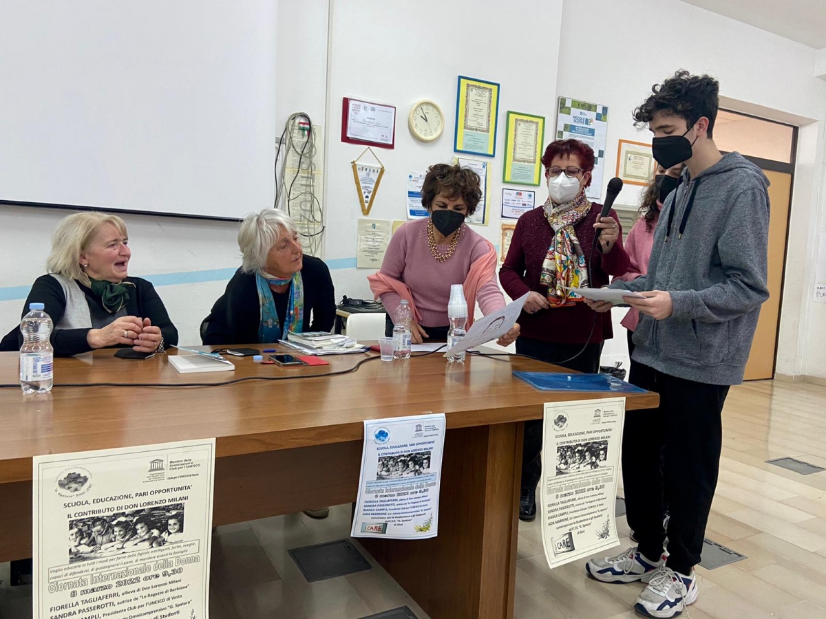 In apertura, la Dirigente Scolastica, Dott.ssa Aida Marrone, ha rivolto il suo saluto ai presenti ed ha evidenziato la presenza significativa delle relatrici: la Prof.ssa Bianca Campli, Presidente del Club Unesco di Vasto, Sandra Passerotti, autrice del libro “Le ragazze di Barbiana” e Fiorella Tagliaferri, allieva di Don Milani.