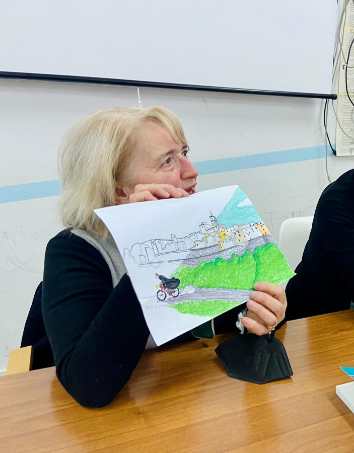 Molto emozionante è, inoltre, il momento in cui i ragazzi e le ragazze dell’I.T.E. donano alle relatrici alcuni disegni realizzati da loro che raffigurano la persona e l’opera di Don Milani, immaginandone la presenza trasformatrice e generatrice a Gissi.