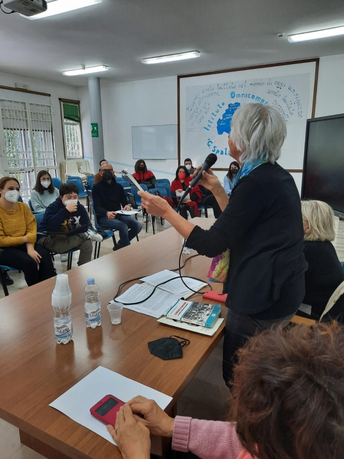 Altro momento emozionante il racconto dell’allieva Fiorella Tagliaferri che ha frequentato la Scuola di Barbiana. Una testimonianza forte, legata ad un vissuto in cui emergono la sofferenza, la discriminazione, la povertà.