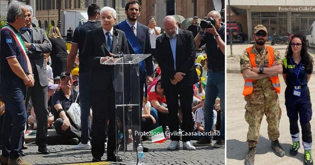Tra i presenti anche il gruppo di Protezione civile di Casalbordino "M. Dell'Assunta"e il distaccamento di Paglieta. Il Presidente della Repubblica è accompagnato dal Presidente della Regione  Emilia-Romagna, Stefano Bonaccini.  Da sottolineare che Raffaella Bozzella caposquadra del gruppo di volontari  di Casalbordino-Paglieta  si è potuta incontrare  con il  fidanzato Lorenzo Tieri, lui nell'esercito e lei volontaria di P. civile fidanzati.