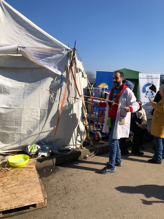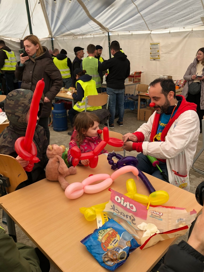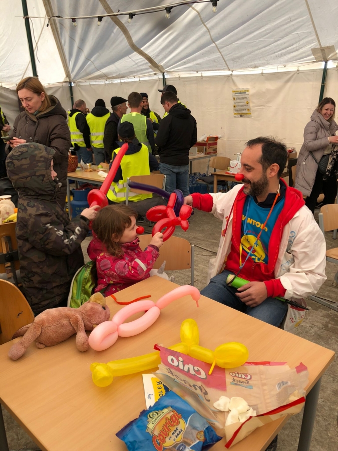 “Fare clownterapia alla frontiera dell’Ucraina, con i profughi ucraini, non è la stessa cosa che farla in ospedale. Ma è comunque un’esperienza forte e straordinaria”, commenta Paolo Guidone, clown Ventolo dell’associazione Ricoclaun, che ha deciso di indossare gli abiti clown per portare un sorriso a Siret, estremo nord est della Romania, alla frontiera con l’Ucraina, dove è presente un campo profughi, luogo di transito di centinaia di profughi.