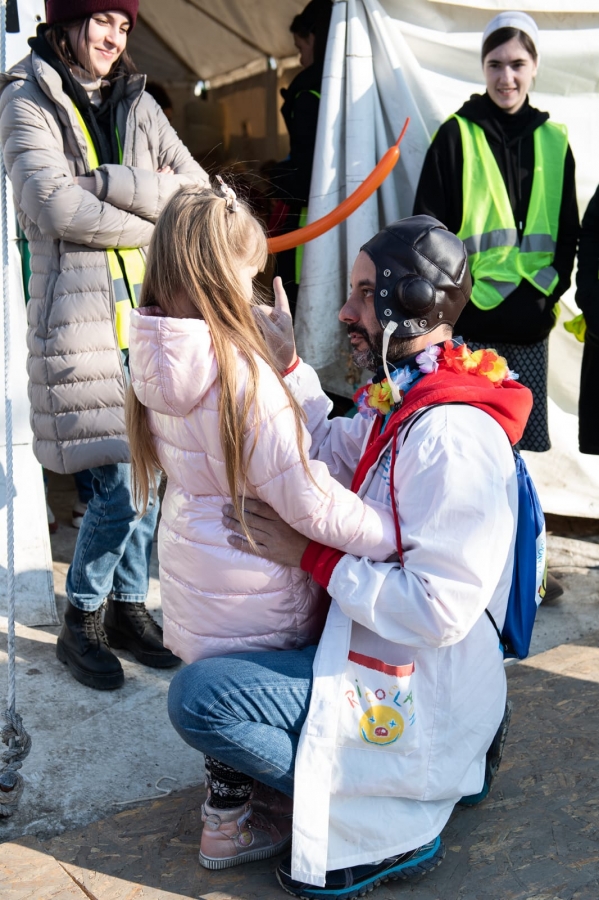 Ma ho vissuto anche la gioia di aver creato questo piccolo miracolo, perché grazie a questo viaggio come clown Ventolo e all’intervista mandata in onda da una Tv della Romania, altre associazioni clown-terapeute locali si sono attivate e hanno promesso che presto arriveranno anche loro a Siret, per accogliere soprattutto i bambini alla frontiera con l’Ucraina. Si è creato un grande interessamento alla clownterapia tra i volontari presenti alla frontiera ma anche tra i reporter internazionali presenti, tutti sorpresi di quello che poteva fare un semplice naso rosso, anche in tempo di guerra.