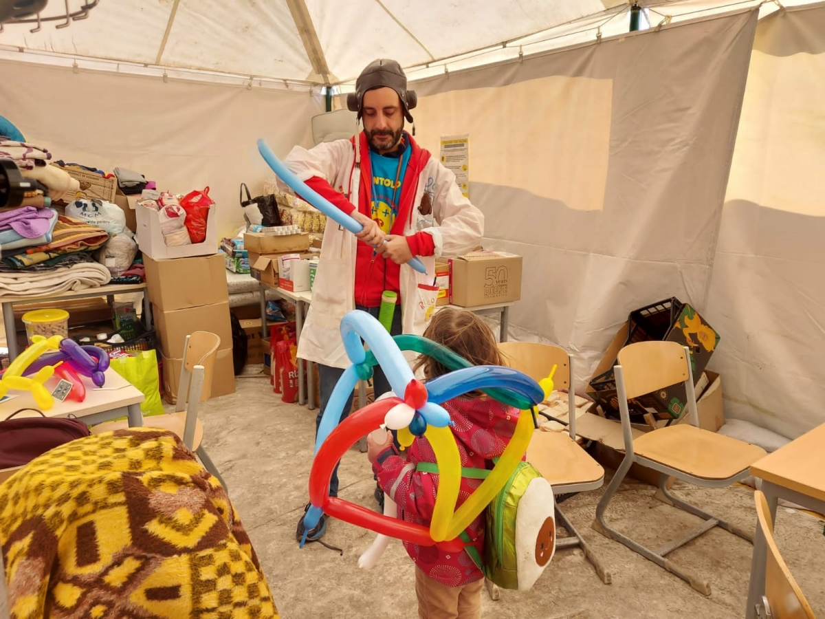 “È stata una cosa nuova per me, è stata una cosa grande”, racconta Paolo Guidone. “Sono partito perché ho sentito la necessità, proprio in quel luogo di sofferenza, di portare il naso rosso. E’ stato un documentario in tv sui profughi ucraini che mi ha colpito molto e mi ha fatto decidere a partire, ma come clown Ventolo.