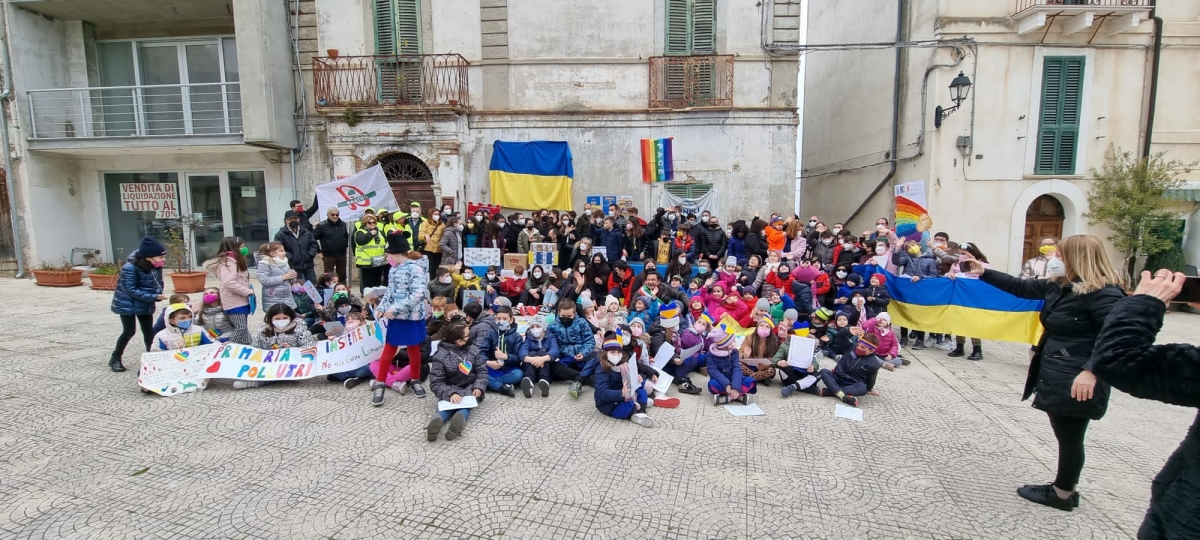 Venerdì mattina piazza Giovanni Paolo I a Pollutri è stata animata da “una bellissima e partecipata manifestazione per la pace e per dire no alla guerra” a cui “hanno partecipato tutti i bambini e i ragazzi delle scuole dell'infanzia, della scuola primaria e della scuola secondaria di I grado” ha raccontato l’assessore comunale Antonio Di Martino. Al centro dell’evento “canti, poesie, letture, riflessioni e lavori sul tema della pace e della solidarietà per l'Ucraina e per un'Europa di pace” mentre nei giorni precedenti “gli alunni delle scuole hanno avviato una raccolta di beni per il popolo Ucraino che ieri mattina sono stati consegnati alla Pro Loco Pollutri APS che da alcune settimane ha intrapreso una raccolta di solidarietà denominata SOS-TIENI L'UCRAINA” ha sottolineato Di Martino. “I ragazzi hanno esposto i loro lavori, tutti sul tema della pace e della solidarietà: messaggi per i bambini dell'Ucraina, ricerca sulle materie prime prodotte negli Stati in guerra, coreografia della pace, lettura di poesie in lingua straniera, studio dei musei Ucraini distrutti, studio delle opere d'arte che la Russia sta richiedendo ai musei italiani” il racconto della mattinata pubblicato sui canali social della scuola. Lo slogan dell’evento è stato “Non c’è tempo da perdere”, prosegue il racconto. “Chi scappa da una guerra ha il diritto di essere accolto, di ricevere cure, di frequentare scuole e di poter stare in un luogo sicuro – ha sottolineato la scuola e, durante la manifestazione, il professor Leombroni, dopo aver portato i saluti del Dirigente ha dichiarato che “la nostra scuola, se dovesse servire, sarà disponibile all’accoglienza di studenti ucraini”.