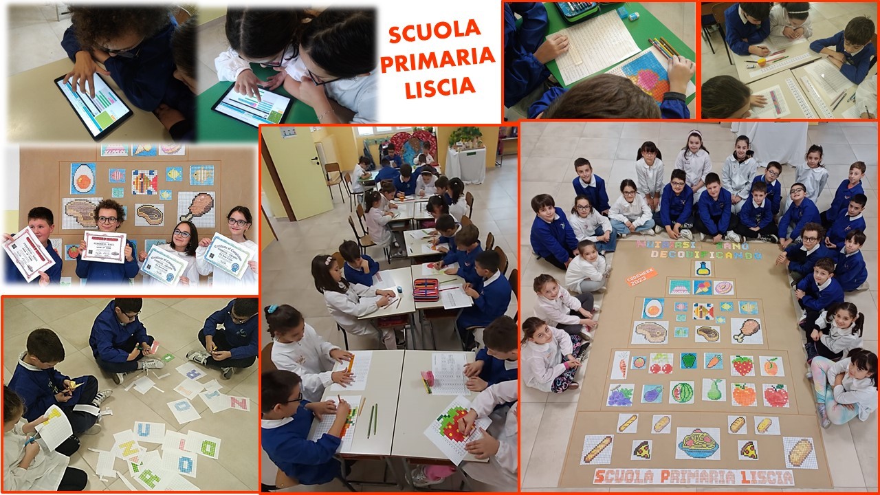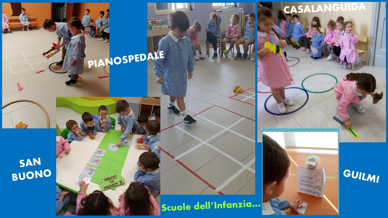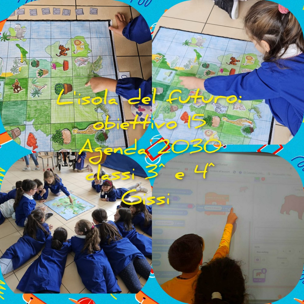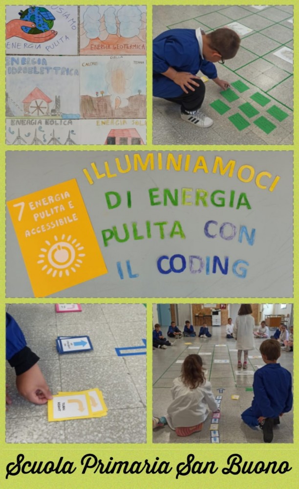 La protagonista delle attività realizzate è stata l’Agenda 2030: sostenibilità, responsabilità, solidarietà, cittadinanza locale e planetaria, sfondo integratore che caratterizza i progetti dell’offerta formativa di istituto. Gli alunni hanno riflettuto sulla sicurezza alimentare, al fine di migliorare la nutrizione e promuovere un’agricoltura sostenibile, decodificando e codificando immagini mediante numeri e costruzione di algoritmi (Ob.2); attraverso frecce direzionali hanno descritto percorsi da compiere, per scoprire le diverse fonti energetiche naturali evitando gli ostacoli rappresentati dalle energie inquinanti (Ob.7). Con attività di Role playing basato sul ridurre, riutilizzare e riciclare, gli alunni hanno prodotto istruzioni con l'utilizzo di un linguaggio simbolico per spostarsi tra le caselle di fogli quadrettati (Ob.12); realizzando percorsi su scacchiere, hanno riconosciuto le identità culturali e religiose di un popolo (Ob.10); hanno progettato e costruito percorsi e mappe dove si sono mossi per trovare i luoghi da proteggere e salvaguardare per rendere il mondo un luogo più equo e sostenibile (Ob.15); condividendo codici hanno costruito messaggi di pace (Ob.16). Oltre alle numerose attività unplugged, gli alunni hanno attinto anche da siti specifici per eseguire percorsi online ottenendo Certificati di completamento. Non sono mancate le attività relative all’autunno con percorsi all’aperto e giochi motori concordando comandi e algoritmi.