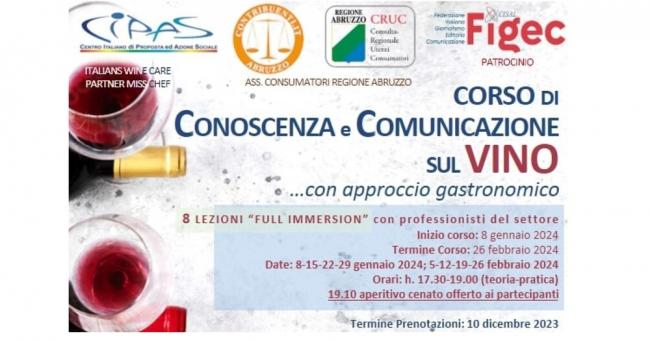 "Mi piace sottolineare - ha spiegato la Acunzo - la partnership, attraverso il Cipas, con il format internazionale 'Miss Chef', con l'associazione nazionale Città Del Vino (500 comuni italiani), ed in collaborazione con Figec/Cisal il nuovo sindacato della Stampa e della comunicazione. Ne approfittiamo per lanciare due iniziative sul territorio, entrambe presso l'Accademia del Gusto a Pescara, sulla comunicazione e conoscenza del vino: la prima, una serata 'Wine lovers' venerdì primo dicembre; la seconda, con 8 serate full immersion, nel periodo gennaio-febbraio 2024, il cui programma è presso il sito cipas (www.cipas.eu)".