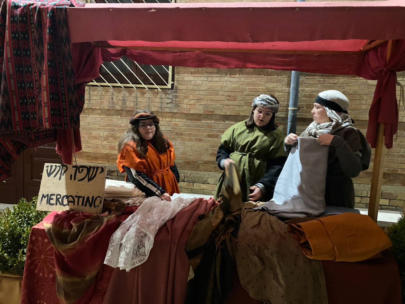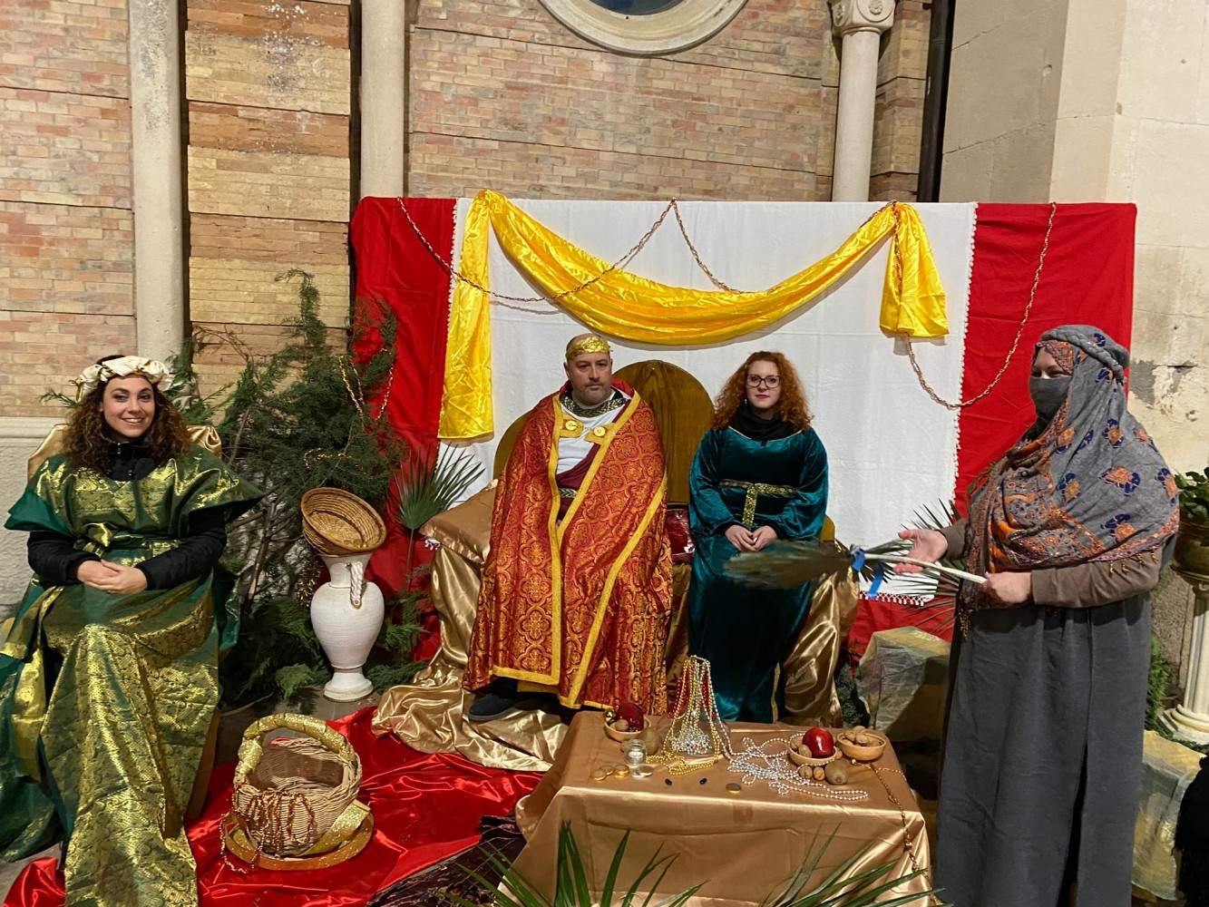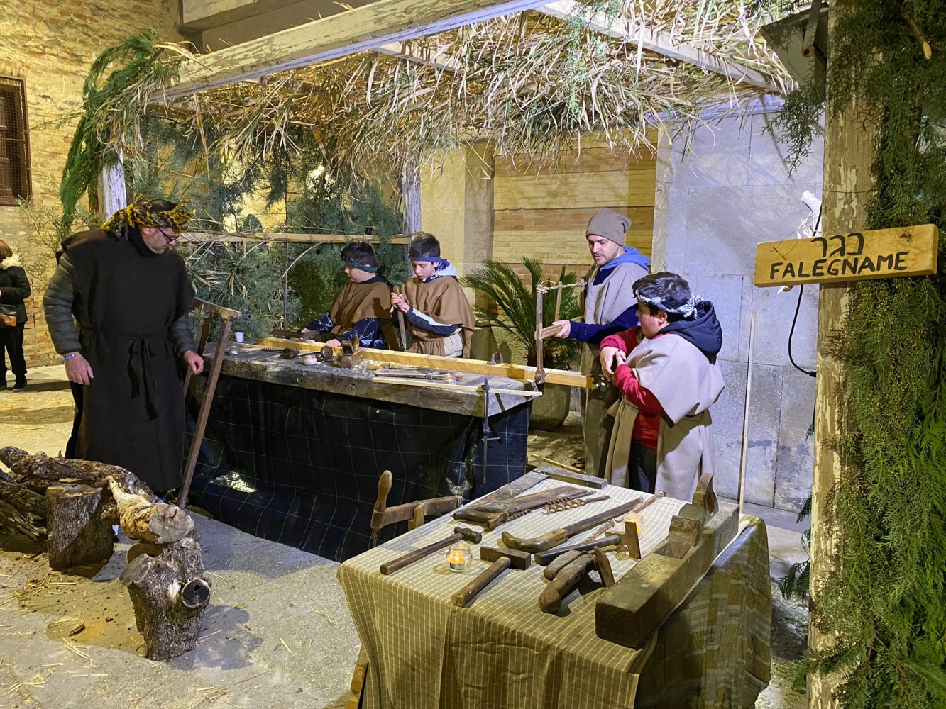 Il percorso si è svolto in un contesto scenografico che ha riprodotto fedelmente i luoghi di Betlemme e in cui sono stati rievocati i momenti della Natività in un’atmosfera incantata e suggestiva frutto delle molteplici botteghe allestite. Sono stati riprodotti gli antichi mestieri come quello del falegname, del fabbro, della sarta, della lavandaia, dei pastori e dello speziale. Non sono mancate: la scuola, la casa del Re Erodoto e la Taverna.