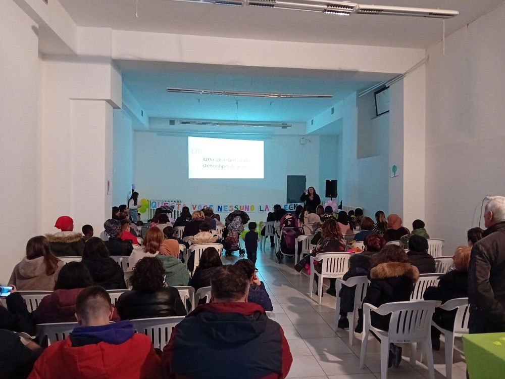 Complice un’atmosfera molto accogliente, una sala “inclusiva” con mamme e papà del Paese insieme a mamme del Centro di Accoglienza e la grande energia dei bambini presenti, uno dopo l’altro, con la moderazione della Coordinatrice dello Sportello Rete del Comune di Palmoli Adelaide La Verghetta, si sono succeduti interventi a cura delle socie volontarie dell’Associazione e delle donne del Progetto SAI aventi come tema centrale l’importanza del riconoscere gli stereotipi di genere. Il tutto tradotto in lingua dei segni (LIS) dalla psicologa e psicoterapeuta, dott.ssa Fabiana Bolognese, anch’essa socia volontaria.