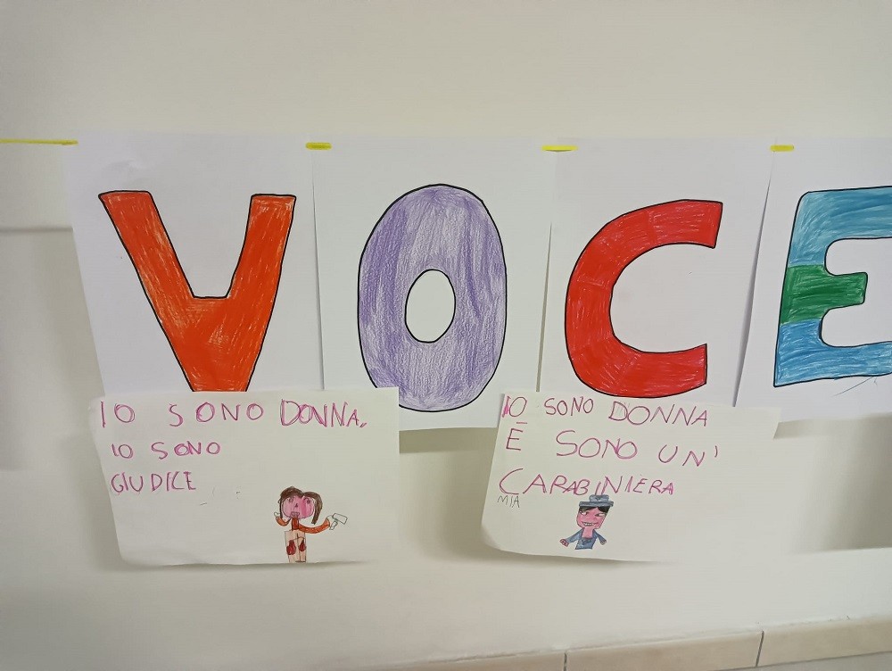 Protagonisti sono stati i giovani studenti che hanno aperto l’incontro: a partire dalla visione di spezzoni di cartoni animati della Disney in cui si annidano tanti stereotipi, come ad esempio la principessa che deve essere bella, buona, gentile e che ha bisogno di un principe forte che la salvi, i bambini hanno provato a scrivere un finale diverso dal solito,  perché la principessa in fin dei conti può vivere bene anche da sola; poi le bambine hanno presentato dei disegni su come si sognano da grandi, disegni che, sulle note della colonna sonora di Aladdin, sono stati appesi sotto uno striscione con la scritta “Questa voce nessuno la spegne”.