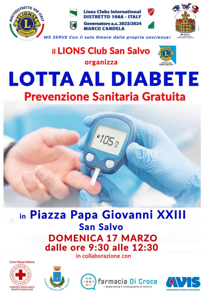 Domenica 17 marzo il Lions Club in collaborazione con la Croce Rossa e l'AVIS San Salvo saranno in Piazza Papa Giovanni XXIII per una Giornata di Prevenzione Sanitaria Gratuita.