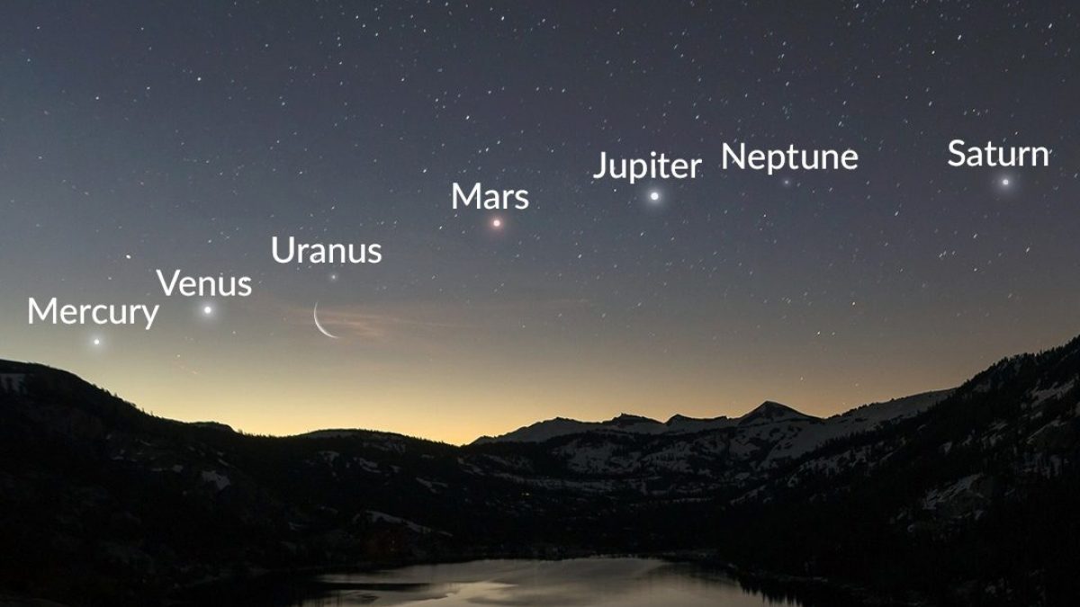 Allineamento dei pianeti Mercurio, Venere, Marte, Giove e Saturno