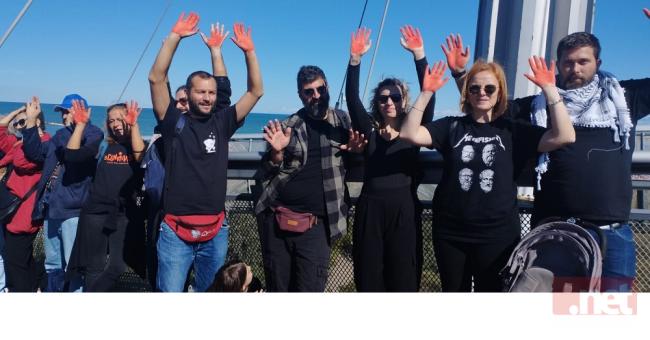 C'era il segretario nazionale di Rifondazione Comunista, Maurizio Acerbo, insieme alla Cgil, a oltre 40 associazioni e organizzazioni del territorio e all'artista Jorg Grünert dell'associazione Deposito Dei Segni.  Tra loro anche una delegazione dal vastese della Casa del Popolo “La Conviviale”. Dopo circa 45 minuti trascorsi sul Ponte del mare la 'catena' è stata protagonista di un fuori programma sulla spiaggia dove i manifestanti, alcuni con bambini e cani al seguito, hanno sfilato in silenzio continuando a sventolare bandiere della Palestina e del Libano.