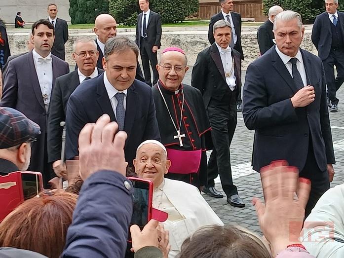 Poco prima delle 9 è iniziata l’udienza con il Santo Padre nell’Aula Nervi. «Il Giubileo è un nuovo inizio, la possibilità di ricominciare un percorso di vita virtuoso, di forza e speranza» ha sottolineato Papa Francesco ai fedeli presenti. La speranza è al centro di questo Giubileo, la Bolla pontificia di indizione è stata intitolata Spes non confundit, “la speranza non delude”, il motto ufficiale, scelto dal Santo Padre, è “Pellegrini di speranza”.