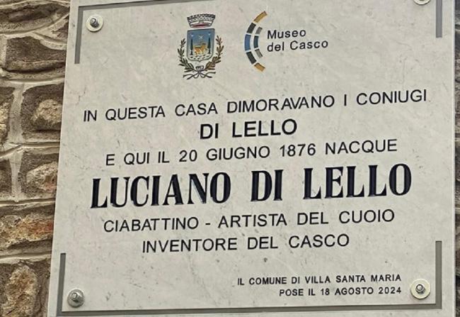 I primi caschi furono realizzati da Luciano Di Lello, originario appunto di Villa Santa Maria, nella propria bottega a Parigi ed erano in cuoio e dotati di visiera rigida. Il brevetto dell’invenzione del casco portò a Di Lello diversi riconoscimenti tra cui la Croce al merito della Repubblica Francese. Sul sito villasantamaria.com il nipote Luciano Di Tinto ha riportato che «Oltre al casco, Luciano Di Lello progettò anche un giubbotto di cuoio gonfiabile a protezione dei piloti, del corpo dei motociclisti, dei ciclisti e di chiunque avesse bisogno di protezione personale». Un progetto che «fu presentato all’Esposizione Campionaria Internazionale di Firenze del 1904» e « fu premiato con la consegna di una medaglia e di una croce commemorative».