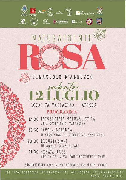 Oggi pomeriggio, dalle 17 in poi, si terrà ad Atessa, in località Vallaspra, “Naturalmente Rosa” un evento itinerante di valorizzazione e promozione della DOC abruzzese del Cerasuolo. Sarà un pomeriggio da vivere tra passeggiate naturalistiche, degustazioni, convegni e racconti di territorio e un concerto jazz al tramonto.
