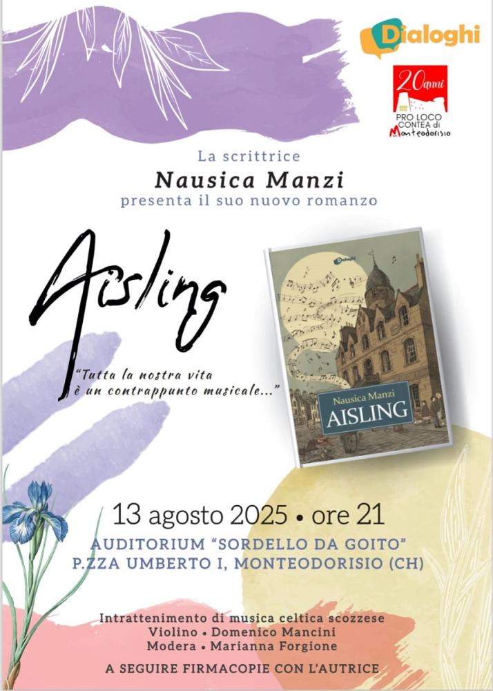 L’Auditorium “Sordello Da Goito”, nel complesso museale del Castello di Monteodorisio (Ch) farà da cornice alla prima presentazione ufficiale di Aisling, il nuovo romanzo di Nausica Manzi, in programma per mercoledì 13 agosto, alle ore 21.