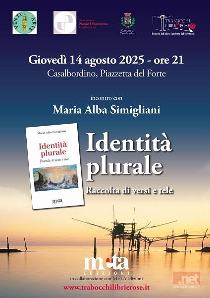 «Identità plurale, è un originale viaggio, un appassionante racconto, una voce di spiritualità laica che cerca eredi – si legge nella presentazione del libro - Ricchezza emotiva e concettuale abitano questo autoritratto che comprende versi e tele di un ampio raggio temporale che va dal 1968 al 2024. In questa raccolta Maria Alba Simigliani con versi liberi e pregnanti mescola pigmenti e pensieri; impasta sensi e sentimenti con “parole storte” e “colori emotivi”; spalma ironia su silenzi profondi. In un’atmosfera sospesa e coinvolgente l’autrice usa la poesia come gesto di resistenza spirituale e lascia una finestra aperta sugli interrogativi del vivere».