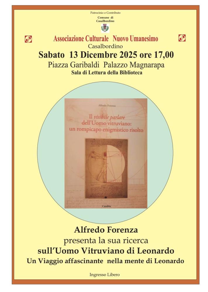 Appuntamento alle ore 17 di sabato 13 dicembre con Alfredo Forenza e il suo libro "Il visibile parlare dell'uomo vitruviano: un rompicapo enigmistico risolto".