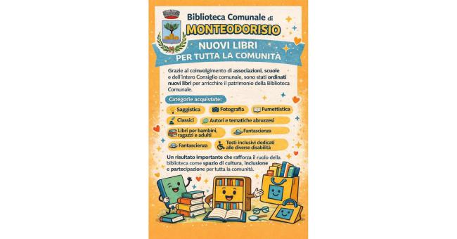 La Biblioteca Comunale di Monteodorisio si arricchisce di nuovi volumi di: