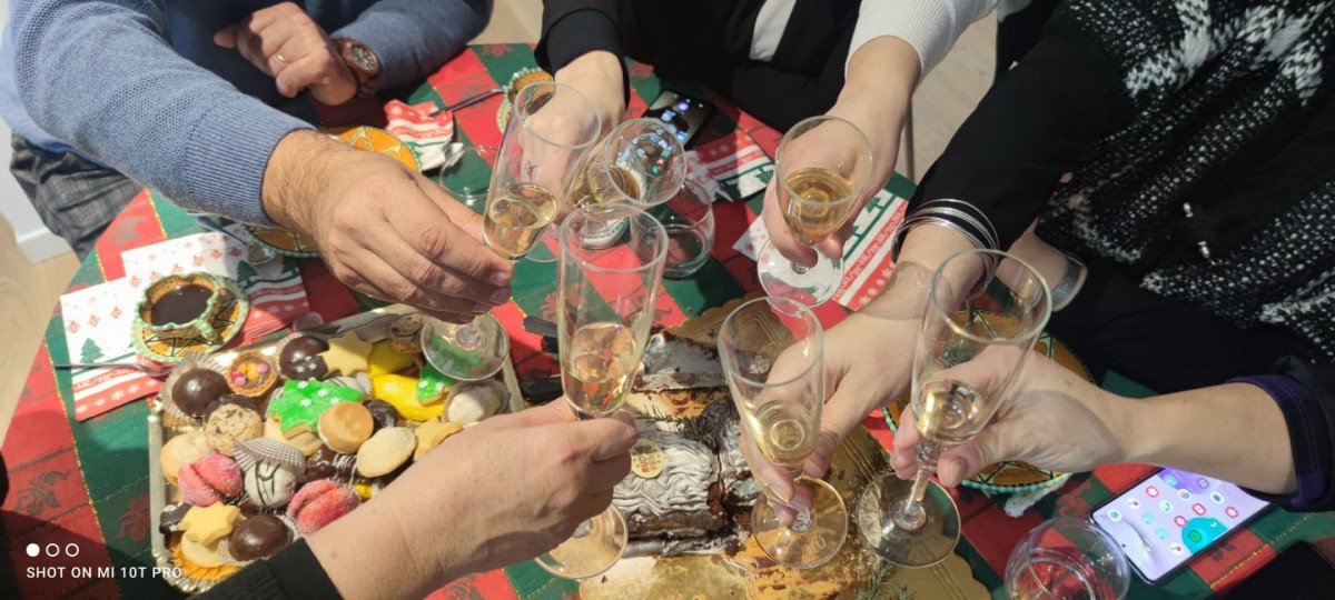 Mani che si stringono in un brindisi prenatalizio e tronchetto rigorosamente a tema per un appuntamento importante per i membri del Comitato Direttivo della prima edizione del Premio letterario Emily "I mille volti della violenza”, presentato a Cupello lo scorso 25 novembre, durante l’evento Donne invisibili, in occasione della Giornata per l’eliminazione della violenza sulle donne (https://www.valsinello.net/notizie/attualita/1472/donne-invisibili-a-cupello-per-celebrare-la-giornata-internazionale-contro-la-violenza-sulle-donne).