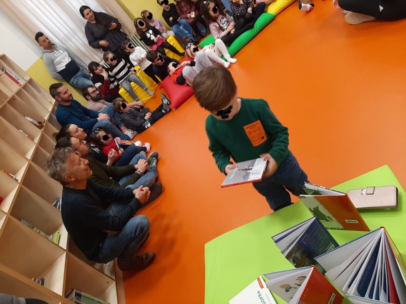 “Che bello vedere di nuovo le biblioteche piene!”: con questa affermazione - densa dell’emozione e della gioia di chi crede davvero nel potere di un libro - l’insegnante Antonella Pizzi, referente del presidio, ha dato il benvenuto ai tanti tra bambini, mamme, papà e zie che si sono ritrovati per trascorrere insieme una mattina all’insegna del piacere della lettura accompagnato dalla magia e dalle dolci sonorità, oltre che delle voci, anche di tanti strumenti musicali, quelli presentati e suonati dal maestro Luca Raimondi, insomma una vera e propria “lettura a suon di musica”!